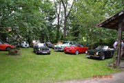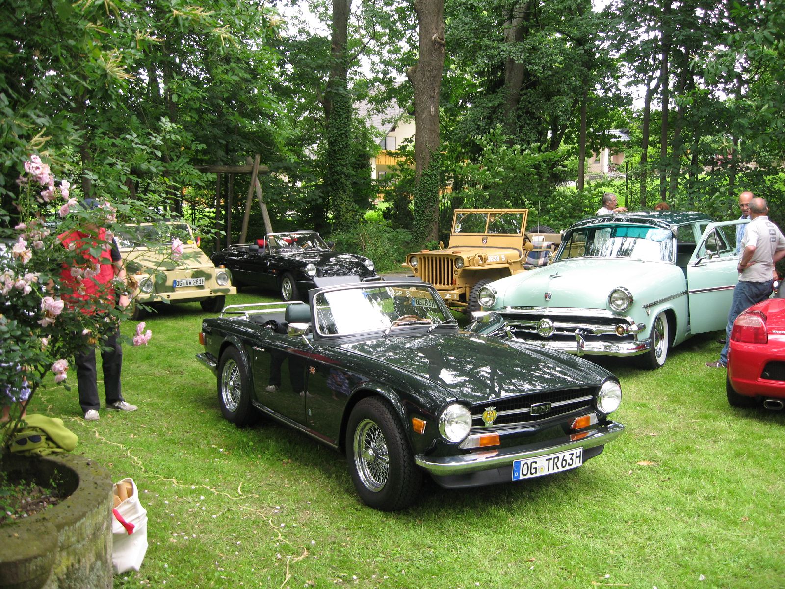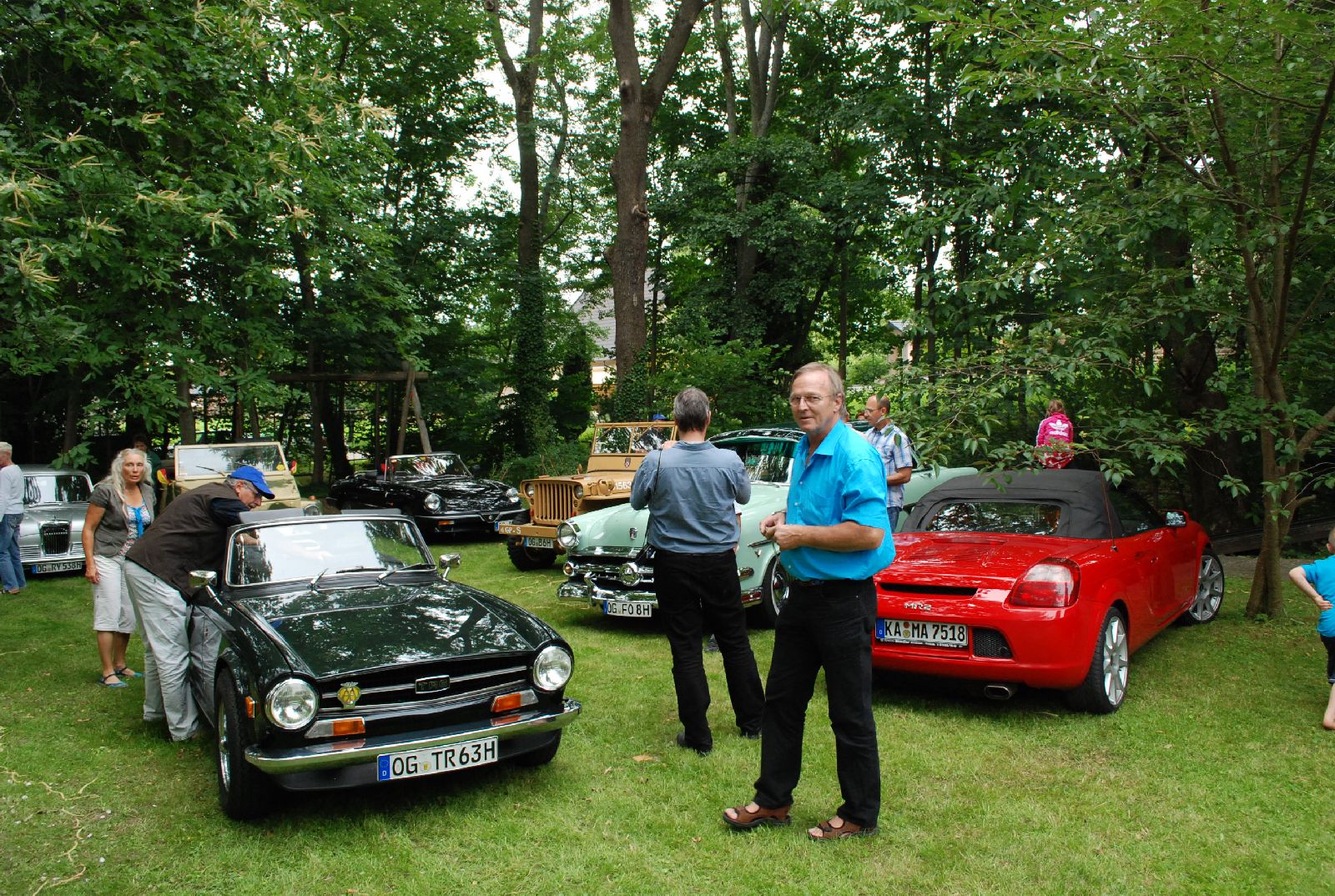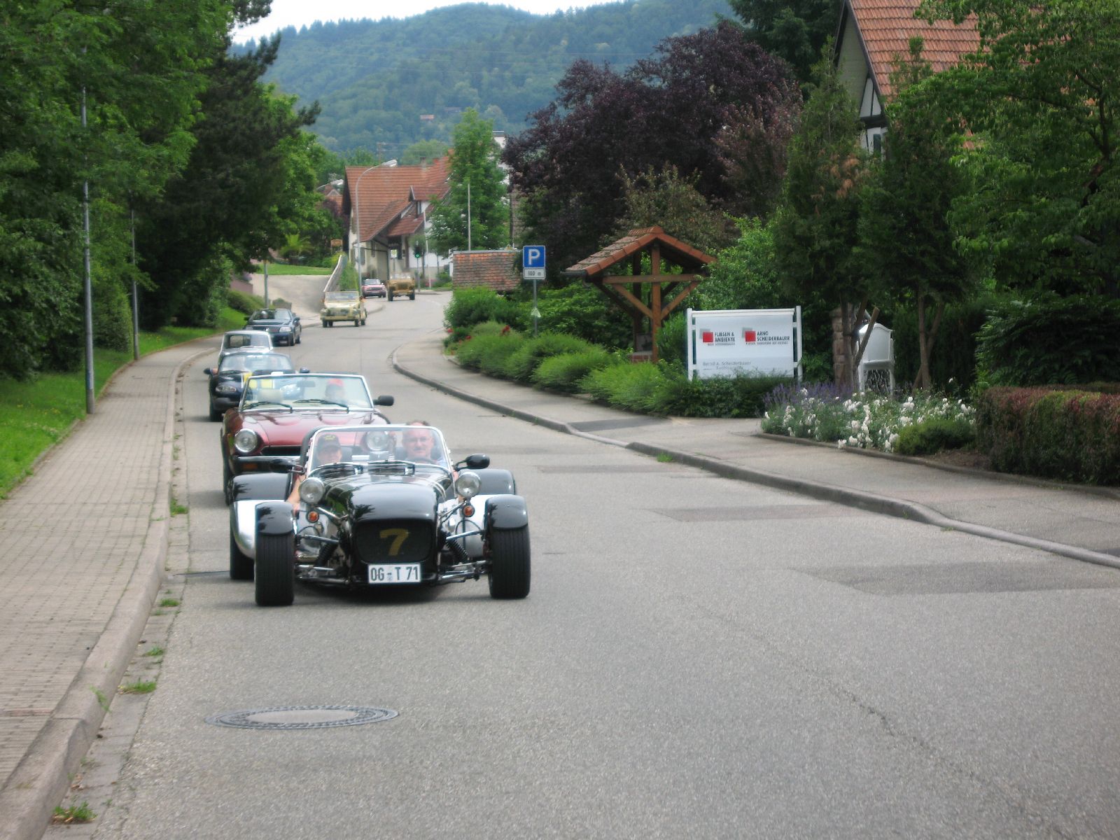 Es war schon ein etwas anderer „Ausritt“, welchen wir mit 15 Oldtimern bei der Juni-Tour nach dem mittelbadischen Sasbach unternommen haben. Nur etwas 5 km vom nachmittäglichen Ziel, entfernte sich der Tross am frühen Morgen in die Gegenrichtung um durch verträumte Dörfer im Hanauerland und Ried zu touren. Obwohl die Strecke vom „Graf Ponti“ hervorragend ausgearbeitet war, schaffte es das Führungsfahrzeug mit den „Leithammeln“ Volker und Frank sich zu verfahren um allerdings nach einigen Kilometern wieder auf die richtige Spur zu kommen. Überrascht waren die 28 Teilnehmer als am Stammlokal dem Landgasthof Ochsen in Ortenberg zum Mittagstisch geladen wurde. Über das Rebvorland erreichte man schließlich das Tagesziel, den Kühnerhof in Sasbach, wo nicht nur der Mühlenbesitzer Rolf Kühner und eine Geburtstagsgesellschaft auf uns wartete sondern auch ein Vertreter der regionalen Presse.