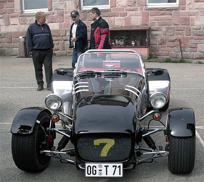 Ab jetzt begannen zahlreiche schlaflose Nächte. Wie komme ich zu solch einem Auto? Diese Gedanken tauchten immer wieder in Tonis Träumen auf. Wäre ein gebrauchter Seven eine Alternative? Und Nick versprach, etwas passendes zu finden, damit endlich diese Albträume aufhörten. Und es sollte nur eine Woche dauern, bis der erlösende Anruf kam. Prompt folgte er der Einladung zu einer gemütlichen Kaffee- Runde in die Pfalz. Und Nick dieses Schlitzohr hatte eine Knallerüberraschung vorbereitet. In der Garage stand ein schwarzer Seven mit rotem Leder und „Schlappen“, wie bei einem Formel-I-Rennwagen. Toni´s Träumereien hatten ein Ende gefunden.
